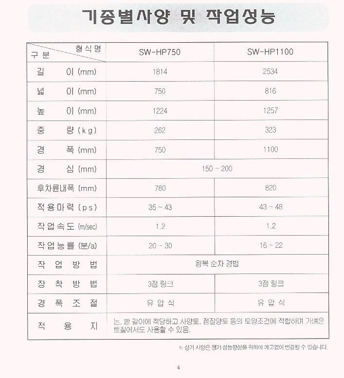 유압쟁기_SW-HP750/1100
