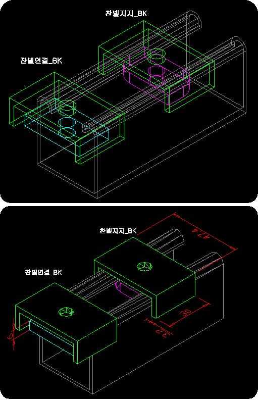 찬넬연결_BK = 찬넬과찬넬연결시 사용합니다/사각구조라 찬넬중간에삽입안됩니다찬넬지지_BK = 찬넬을 천정에 전산볼트를 연결할때 사용/찬넬중간에 추가할수있게 라운드가공됨