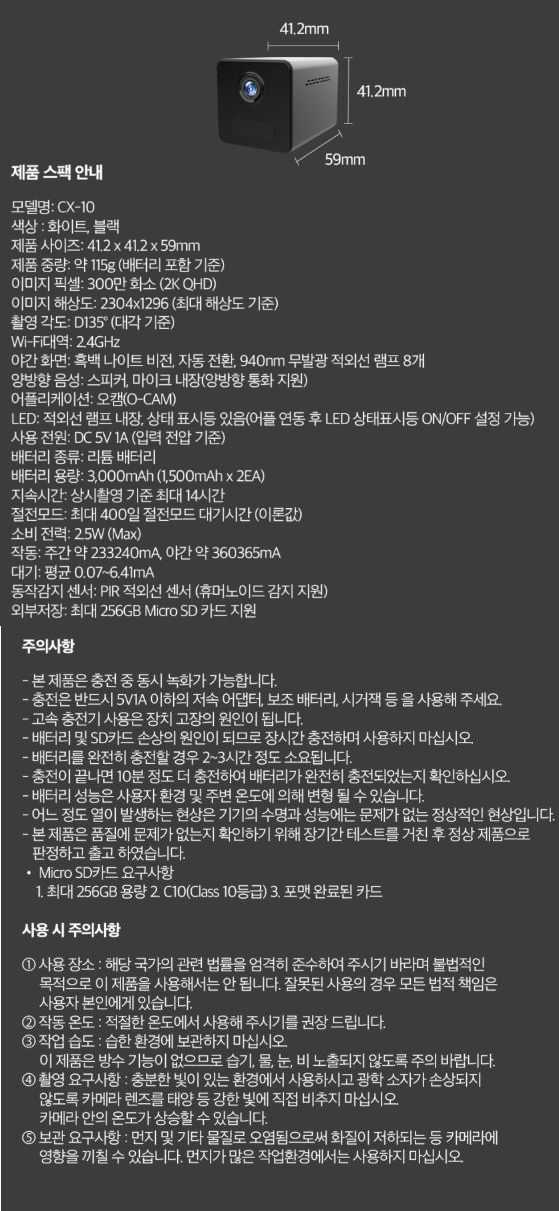 [NO_번호 : 43273] [수정일자 : 2026-01-23] 무선소형카메라_CX-10