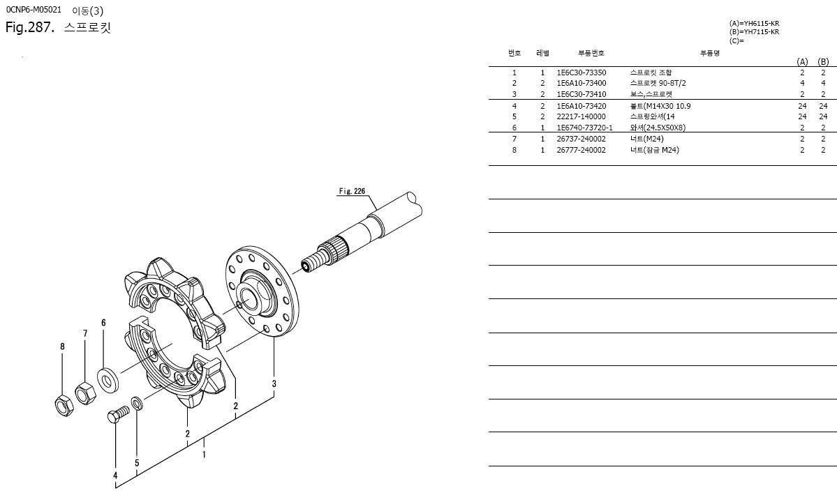 [NO_번호 : 30606] [수정일자 : 2025-12-17] 휠스프로켓8T_6114_BAW6114/AW7114/YH470/YH570/YH6115/YH7115